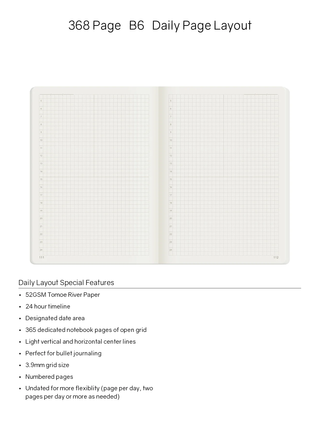 Undated daily notebook featuring 52gsm Tomoe River Paper by Tomoegawa.