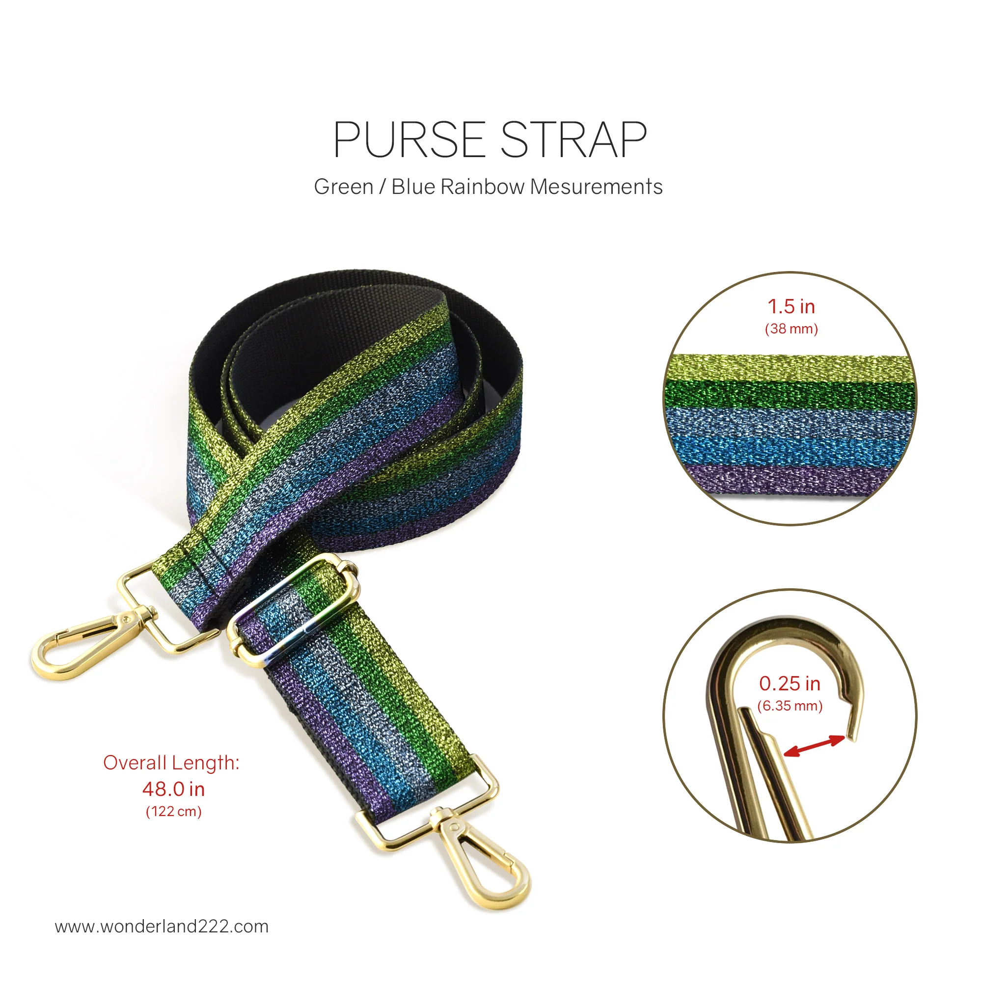 Make a statement with one of these sparkling planner purse replacement straps. Materials: Woven canvas, soft gold hardware.